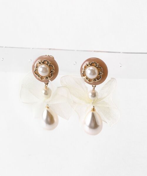 トレンドのシアー素材で仕上げられたリボンがポイントとなるイヤリングです♪こなれ感のあるカラーバリエーションで、色違いで揃えるのもおすすめ◎甘く上品な印象のパール使いが、より華やかに演出してくれるアイテムです☆*商品の実測サイズは柄A・柄Bです。[柄C・柄D]タテ約5.2cm/ヨコ約4cm/パール直径約0.7cm