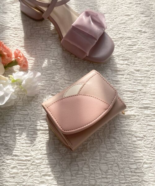 チューリップのデザインとフェミニンな配色カラーがかわいさ溢れる三つ折り財布。