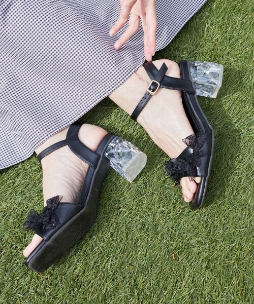 360度どこからみてもかわいい!レースリボン×クリアヒールの華やかサンダル