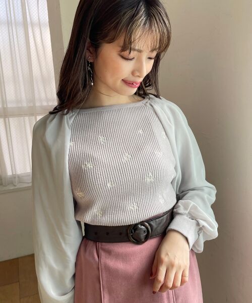 可愛い刺繍ニットが登場♪花刺繍とハート刺繍のアソート展開です。ボディ部分がハイゲージニットになっている為、シルエットがとても綺麗で、袖が異素材になっているのでふんわりした袖感が可愛いです。洗い不可 ドライクリーニング可*素材の特性上、毛羽立ち・ピリング(毛玉)が生じますのでご注意下さい。*摩擦や水濡れによる色落ち・色移りにご注意下さい。*デリケートな素材を使用しておりますのでお取扱いにご注意下さい。