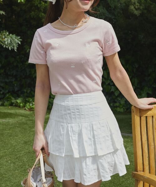 ガーリーなモチーフ刺繍を散りばめたコンパクトTシャツ