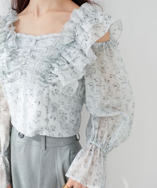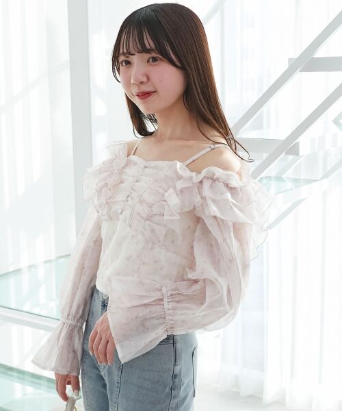 ボリューム感のあるフリルが華やかな印象を与えるフェミニンブラウス。