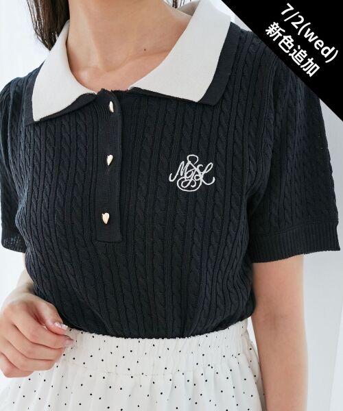 レイヤードしたかのように見えるダブル襟のニットトップス。