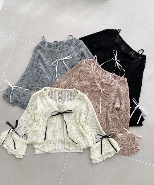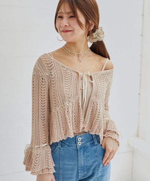 ざっくりとしたレース編みがシーズンムード漂うロマンティックキャミ&カーディガンセットが登場