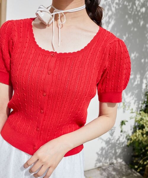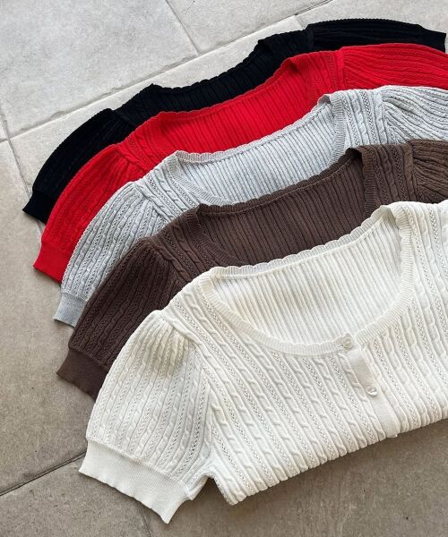 立体的なケーブル編みとコンパクトなサイズ感がカワイイニットカーディガン。