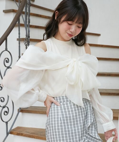 マルチに使える万能カットソータンクトップと、フロントのリボンがポイントのシアーシャツがセットになったアイテム。