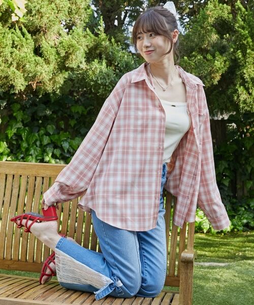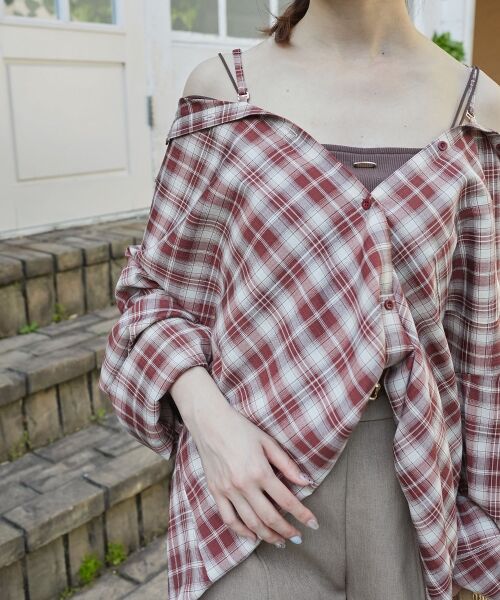 さりげない肌見せで、大人可愛いチェックシャツ