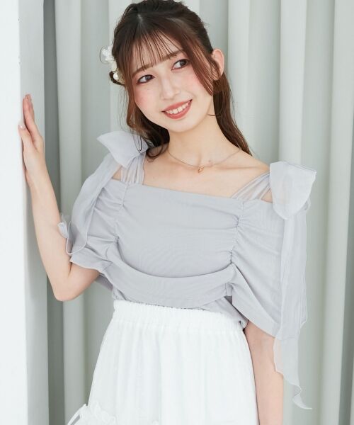 肩リボンとオフショルデザインがフェミニンムードたっぷりのカットトップスが登場♪