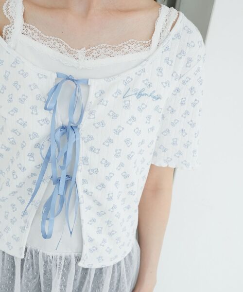 [ブルー柄]カーディガン:本体/綿100% 刺しゅう糸/ポリエステル100% リボン/ポリエステル100% キャミソール:本体/レーヨン92% ポリウレタン8% チュール/ポリエステル100% レース/ナイロン90% ポリウレタン10%