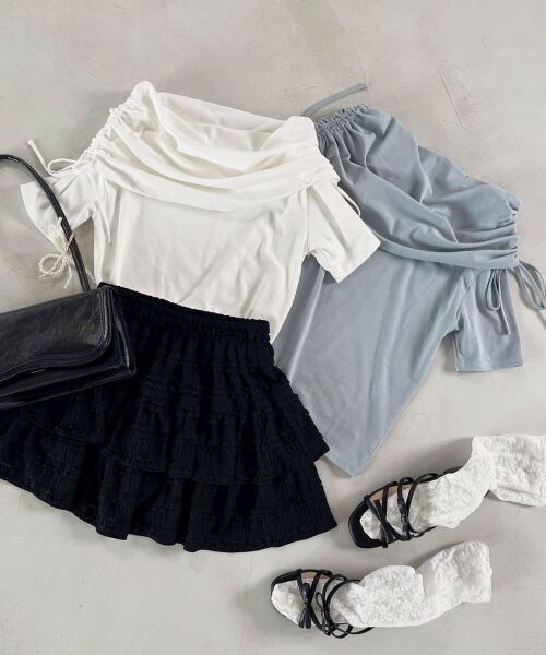カジュアルにもフェミニンにも…様々な着こなしを楽しめる万能オフショルトップス。