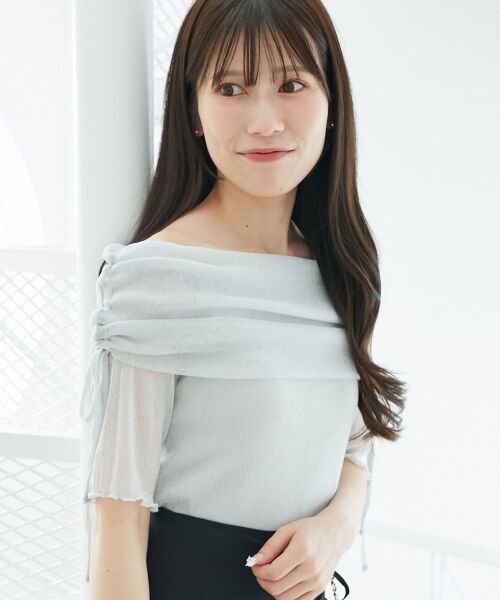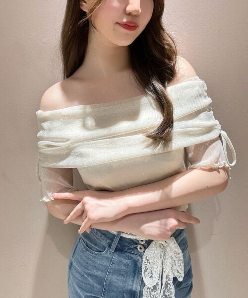 シアー&ラメがトレンドムードたっぷり!人気のオフショルチュールトップスが半袖になって登場