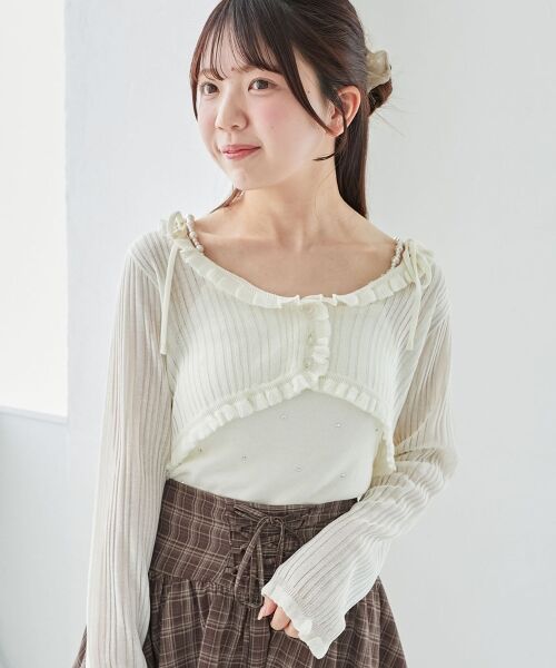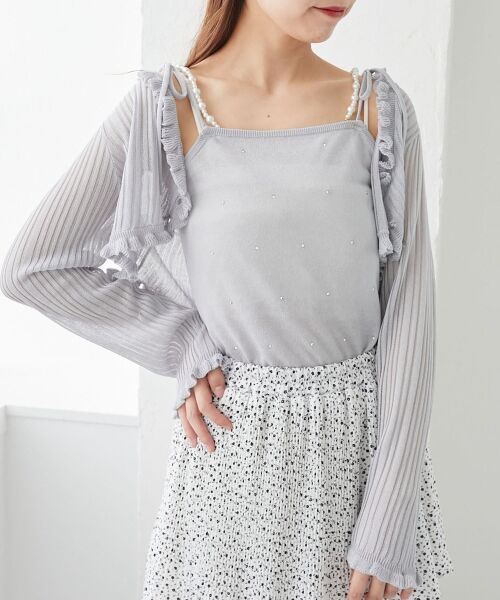 パールチェーンキャミセットフリルカーデ