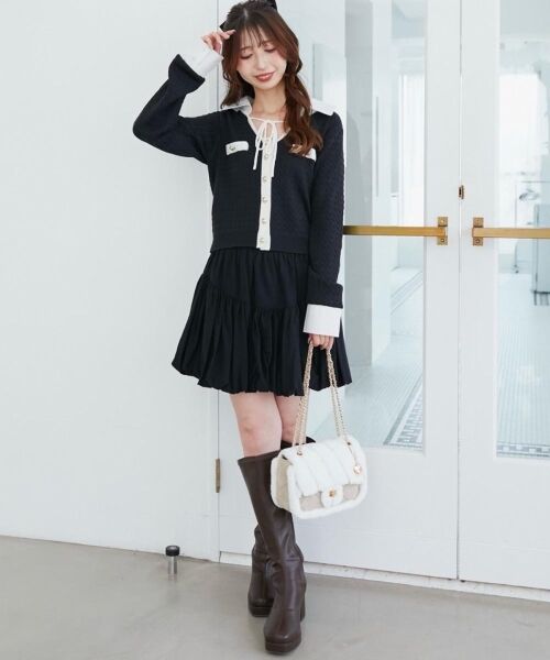 ボリューム感のあるスカートなので、コンパクトなトップスとの組み合わせがおすすめ。