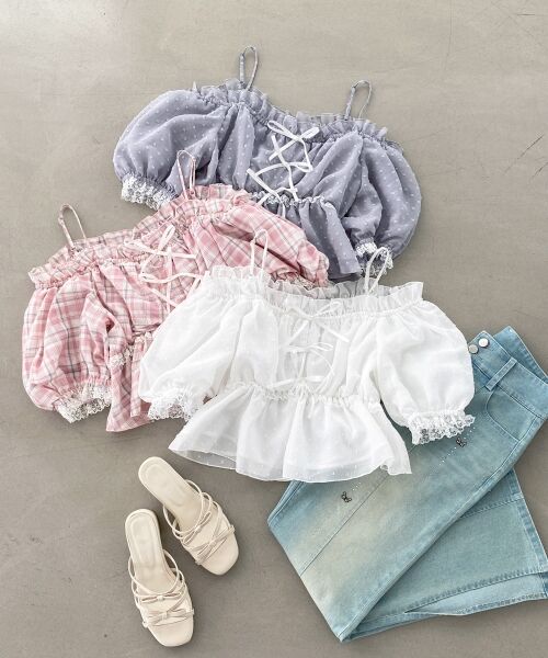 フロントのリボンやトリミングされたレースがフェミニンムードたっぷり♪