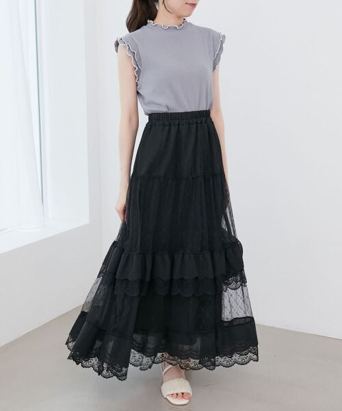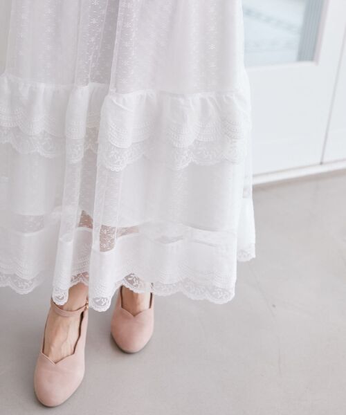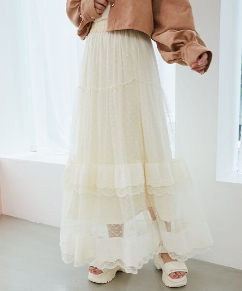 3種類のレース使いで贅沢なボリューム感のあるティアードスカート。