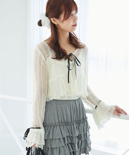 ざっくりとしたレース編みが今シーズンのムードにぴったりなロマンティックなセットアイテム。