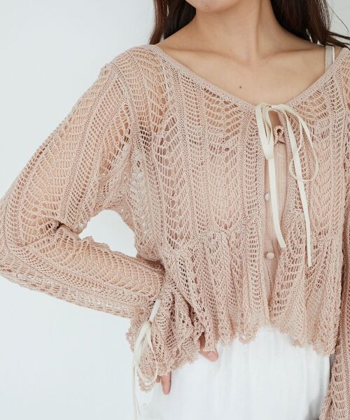 ざっくりとしたレース編みがシーズンムード漂うロマンティックキャミ&カーディガンセットが長袖になって再登場!