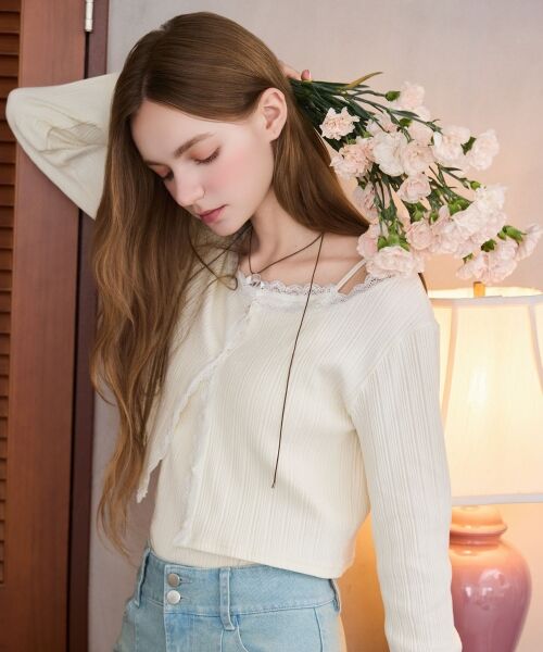 キャミソールにはネックラインにリボンを添え、バレエコアムードを演出します。
