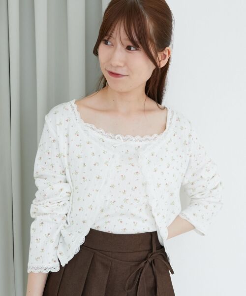 【アイボリー柄】[カーディガン]本体/綿100% レーステープ/ナイロン88% ポリウレタン12% [キャミソール]本体/綿100% レーステープ/ナイロン88% ポリウレタン12% サテンテープ/ポリエステル100%