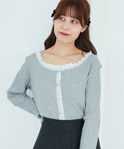 袖口やネックラインにレースをあしらったレイヤードスタイルが楽しめる、今っぽセットアイテム。