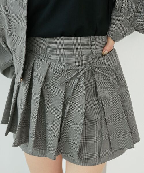 Aラインに広がる台形シルエットで女性らしさを演出するラッププリーツデザインのショートパンツ。
