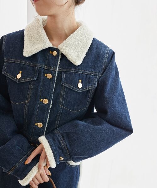 もこもこのボアをあしらった襟元がこなれ感を演出するクロップドジャケット。
