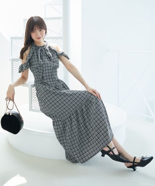 アメスリデザインが肩まわりを美しく見せ、程よい肌見せで大人かわいいアメスリワンピ。