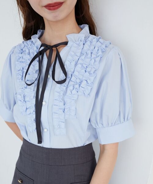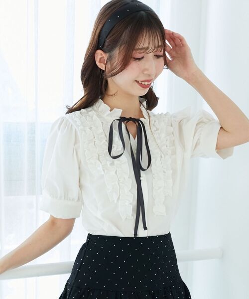 顔周りにたっぷりとフリルをあしらったリボンブラウスが登場♪