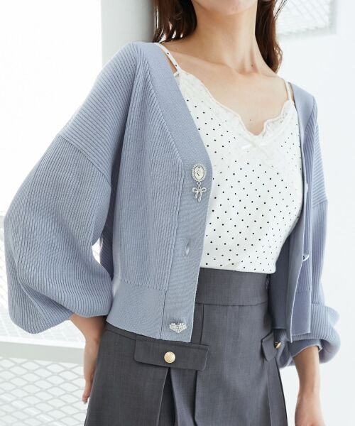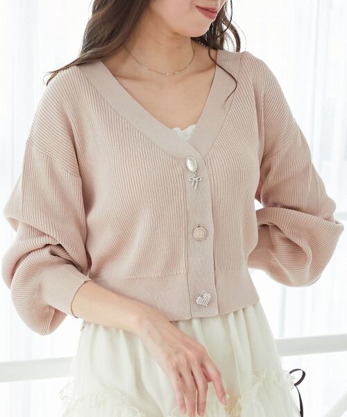 キラキラのビジューにリボンチャームが印象的な上品カーディガン。