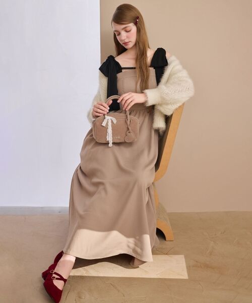 夏に映える大ぶりのビッグショルダーリボンと、華奢なラインが際立つデコルテデザインで顔まわりを華やかに演出。