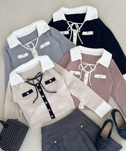 着るだけで"女っぽ上品" バイカラーが映える襟付きニット