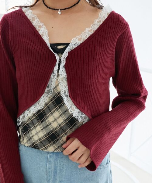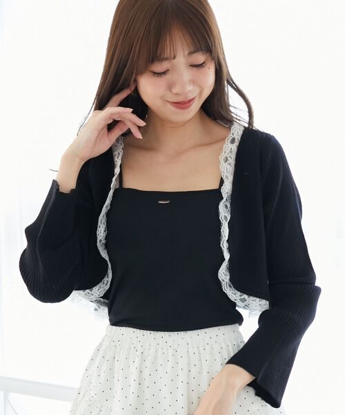繊細なレースをあしらった、フェミニン度高めのフリルカーディガン。