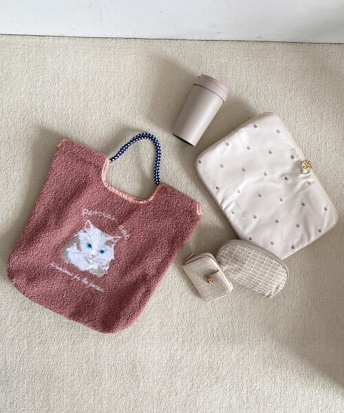 やさしい手ざわりのボア素材に、キュートなアニマル刺繍をあしらったトートバッグ。