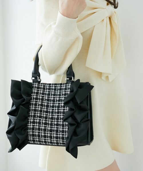 大胆なフリルとツイード生地をMIXしてオトナ可愛いデザインに。