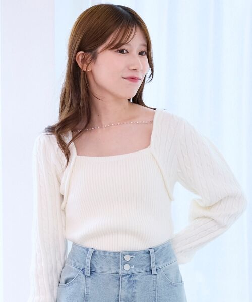 ほどよいフィット感と立体的なケーブル編みが、女性らしさを引き立てます。