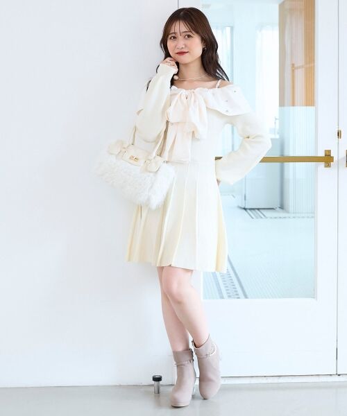 サテンリボン×ビジューで魅せる、主役級ニットワンピース