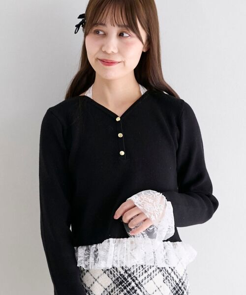 裾にレースをドッキングし、シンプルながら映える一枚に仕上げました。