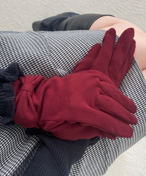 手首のリボンモチーフがアクセントになった、フェミニンなグローブ。