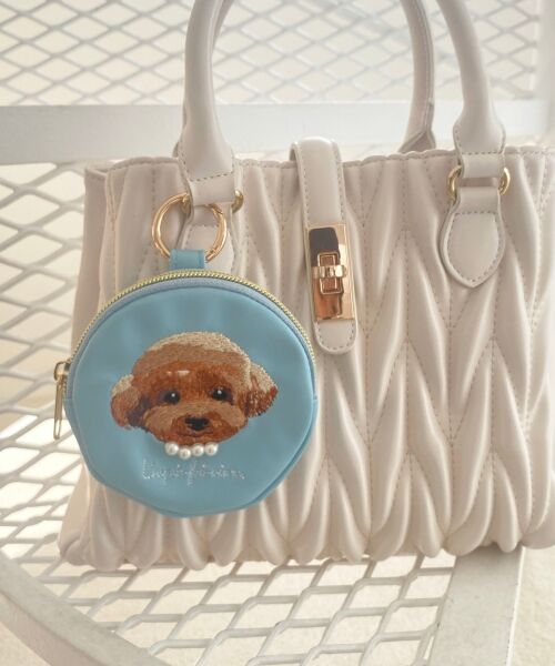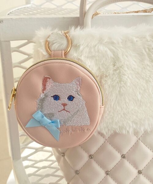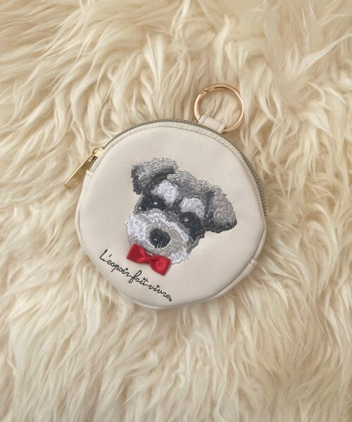 まるいフォルムにアニマルモチーフの刺繍をあしらった、愛らしいチャームポーチ。