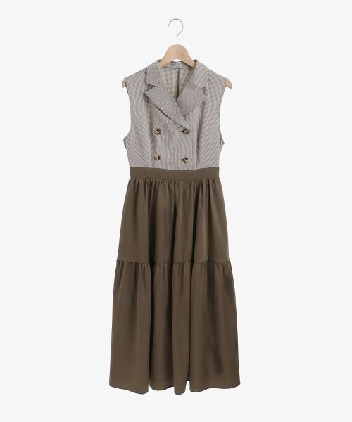 トレンチベストデザインと千鳥格子柄が、クラシカルな印象でスタイリッシュに仕上げたワンピースです☆ハイウエストにティアード仕様のスカートは、シャリ感のある素材で着心地が良くスタイルアップ効果も◎シンプルなカットソーや、タートルネックと合わせてスタイリングして頂くと雰囲気が変わり幅広く楽しめます!手洗い可 ドライクリーニング可 陰干し*摩擦や水濡れによる色泣き・色移りにご注意下さい。*デリケートな素材を使用しておりますのでお取扱いにご注意下さい。