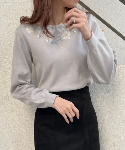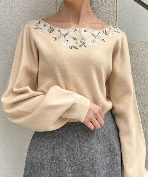 フェミニンカラーに首元の花のシシュウが華やかで、顔周りをパッと明るくしてくれます♪コンパクトな丈感で使いやすく、厚すぎず柔らかな素材が着心地バツグンで重宝したい1枚◎キャミワンピに合わせてレイヤードスタイルなど、女の子らしさいっぱいのコーデを楽しめます☆洗い不可 ドライクリーニング可*摩擦や水濡れによる色落ち・色移りにご注意下さい。*素材の特性上、毛羽立ち・ピリング(毛玉)が生じますのでご注意下さい。