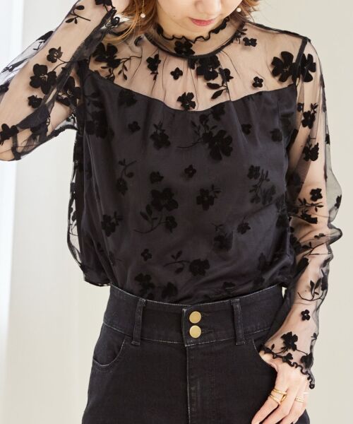 首元や袖口のメロウフリルがかわいい、大人な肌見せコーデを楽しめるアイテム。