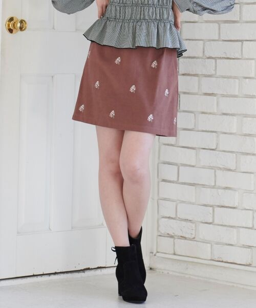 少しとろみのある生地に、繊細な花柄エンブロイダリーを施したSWEETなスカート♪ウエストゴムとコンパクトな台形シルエットで、スッキリとした着こなしを叶えます★フリルブラウスやゆったりとしたニットと合わせた、フェミニンスタイルもオススメ◎手洗い可 ドライクリーニング不可 陰干し*摩擦や水濡れによる色落ち・色移り・色泣きにご注意下さい。