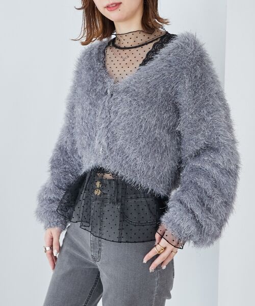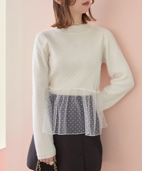 フロッキードットがプリントされたチュールが抜け感をプラスしてくれるトップス。