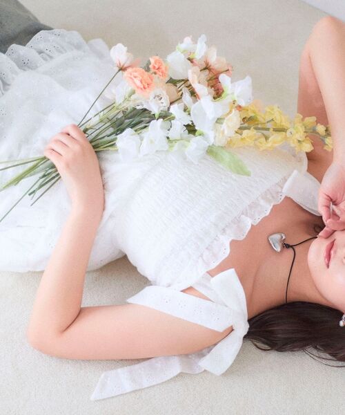 肩紐はリボンで結ぶタイプなので長さ調節していただけます。