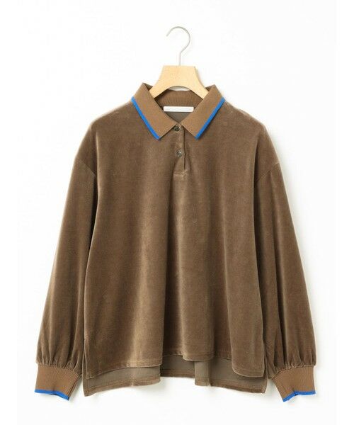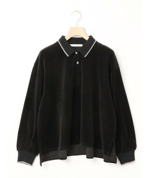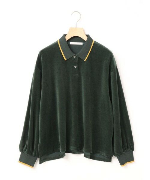 ワイドシルエットのポロシャツに編み立て襟と袖口に配したユニホームライクなラインカラーがアクセントになったラインポロプルオーバー。ベージュ×ブルー、グリーン×イエロー、ブラック×グレー。袖口はフィット感のあるリブ使い。リラックスしたサイズ感でカジュアルになりすぎないのがポイント。起毛素材特有のソフトな風合いを出しつつ、裏面のポリエステルで適度な張り感を残した心地いいベロア素材を使用。裾は若干の前後差を付けたサイドスリット入り。(3-810013/ラインポロワンピースと同素材)。どこか懐かしさのある1枚です。