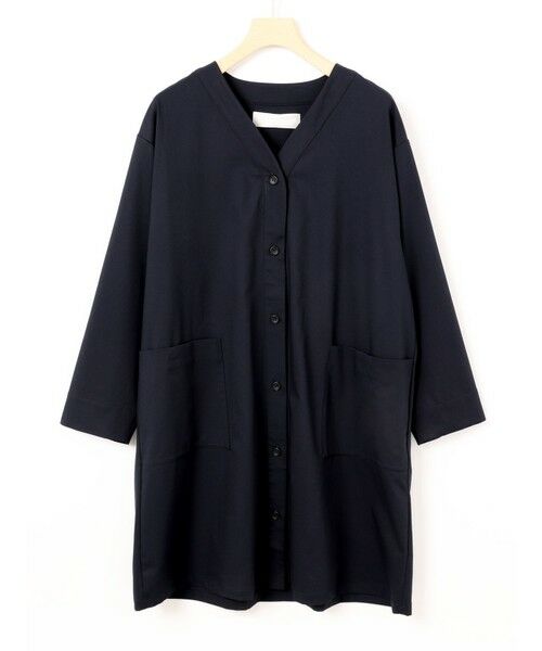 ロングニットカーデをデザインソースにした布帛のカーデライクジャケット、ウーブンVネックカーディガンです。季節の変わり目に活躍する羽織りアイテム。程よくゆとりのあるサイズ感で、季節が進んだ際にも上からニットカーデやアウターをレイヤード出来るのでロングシーズン活躍。ダレて見えないようポケット口は隠し釦仕様に。同素材シリーズのパンツ(3-860020)やオールインワン(3-850005)と合わせたセットアップスタイルもおすすめ。ストレッチ性を兼ね備えた落ち感のあるTRツイルを使用。オン・オフを問わない上品でトラッドな素材の魅力の1枚です。