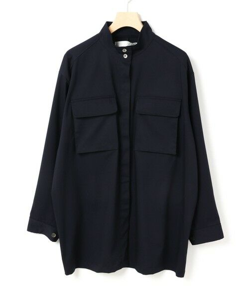 CPOジャケットのような胸ポケット付きディティールがポイントのメンズライクなハイネックワイドシルエットシャツ。こちらも季節の変わり目から真夏以外ロングシーズン活躍する、シャツとしても羽織りとしてもコーディネート可能なアイテムです。同素材シリーズ(3-860020)のパンツと合わせたセットアップスタイルもおすすめ。ストレッチ性を兼ね備えた落ち感のあるTRツイル。オン・オフを問わない上品でトラッドな素材が特徴。(3-850005/オールインワンと共通素材 ※オールインワン以外3色展開)。