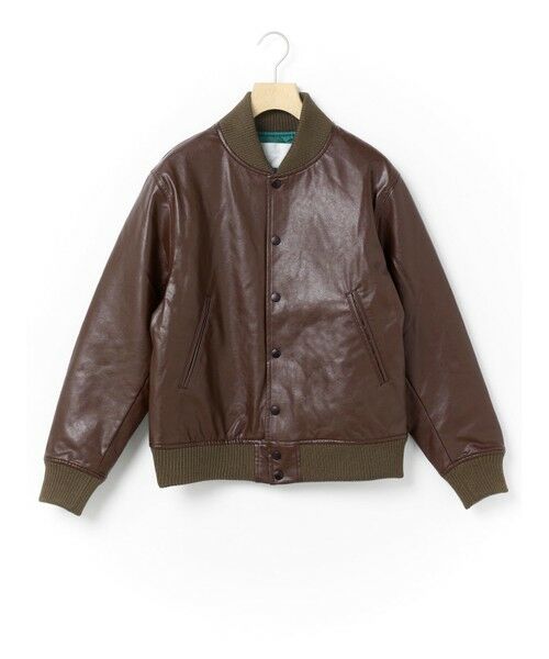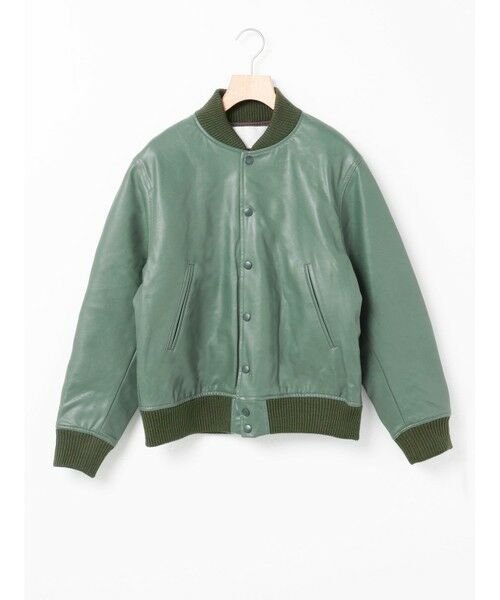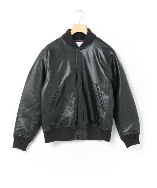 Varsity Jacket いわゆるスタジャン。元々はトラッドやアイビーの流れのアイテムです。一般的には身頃がメルトン、袖がレザーであることが多いところを身頃もレザーに統一し、ミニマルな印象にアレンジしました。配色も極力なくし、大人がスラックスなどで合わせても良い位のスタジャンに仕上げた1枚。シルエットはそこまで大きくなくかっちりと着れる、本来のトラッドとしてのスタジャンサイズ。生地はカーフレザー調がメンズライクなしっかりめのフェイクレザー。カラーにより異なる配色のキルティング裏地もさりげないポイントとなっています。