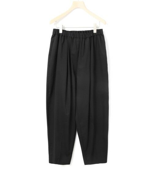 ウエストからタックを施したタックテーパードパンツです。全体的に丸みのあるシルエットを表現。タックによってパンツ自体に動きがあるのも特徴。リラックス感のあるウエストゴムは中紐も付いた穿きやすいデザインに仕上げました。ストレッチが効いており穿きやすさ抜群。ベーシックなカラー展開なので着回しアイテムとして大変重宝します。Pointシルエット:ルーズ・ワイドデザイン:無地ウエスト:ゴムありDetail裏地:なし透け感:なし伸縮性:多少あり光沢感:多少ありポケット:サイド・バック※商品画像は、光の当たり具合やパソコンなどの閲覧環境により、実際の色味と異なって見える場合がございます。予めご了承ください。※商品の色味の目安は、商品単体の画像をご参照ください。